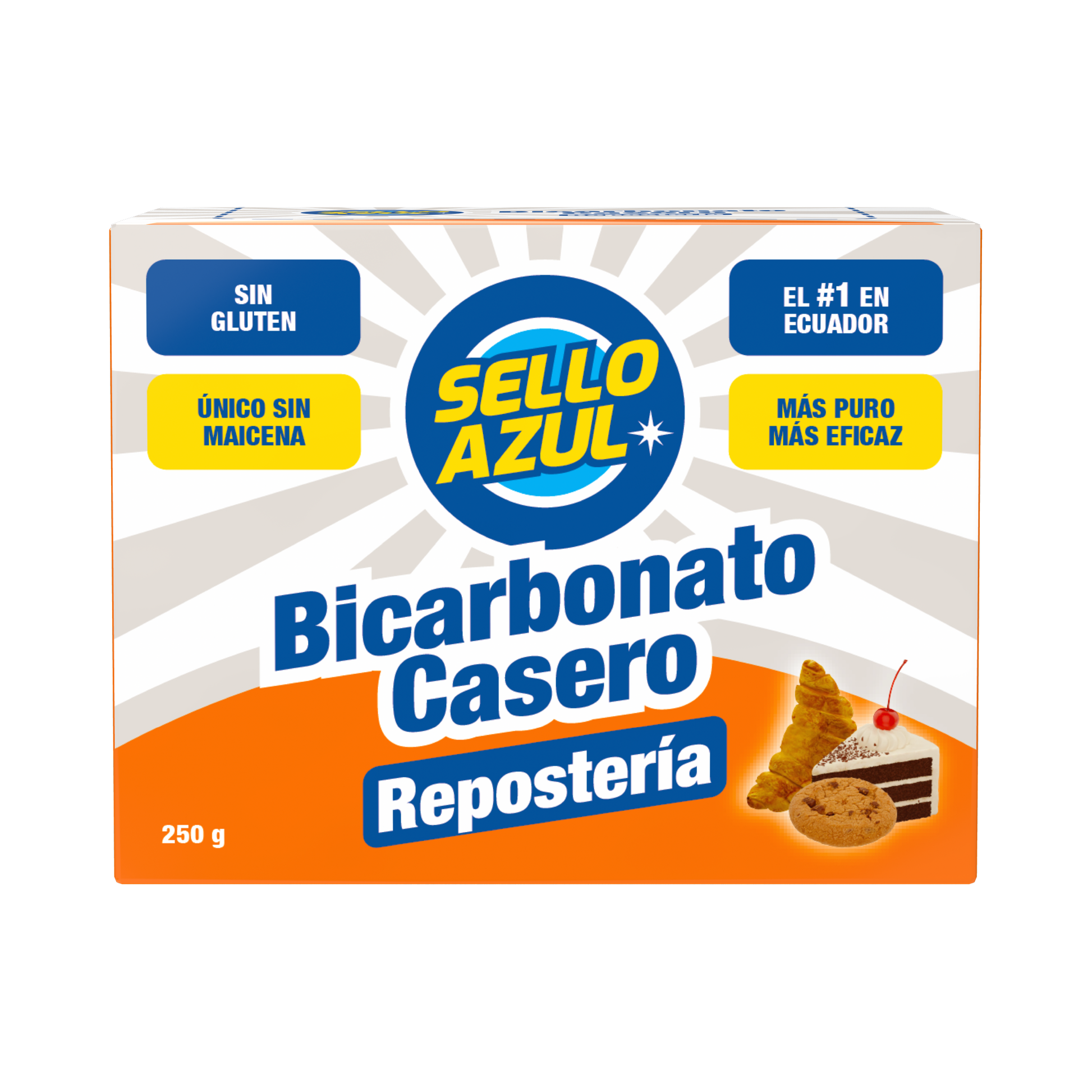 Bicarbonato Casero Repostería Sello Azul es un bicarbonato de sodio de grado alimenticio, puro y sin gluten. No contiene maicena y ayuda a lograr masas más esponjosas en tortas y pasteles. Ideal para cocina y limpieza: elimina olores, remueve grasa y manchas, y deja utensilios y telas impecables.